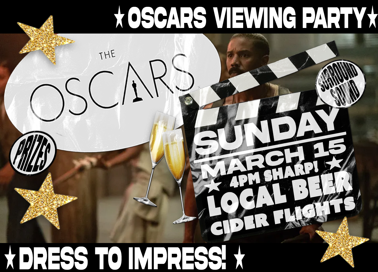Join us for the 98th Academy Awards. Prizes for Best Dressed + Most Oscar Predictions. Featuring a fancy cider pour + cider sunday tasting flight curated by Press Then Press Cider Shop. Surround sound + reservations of all sizes. 4pm sharp!